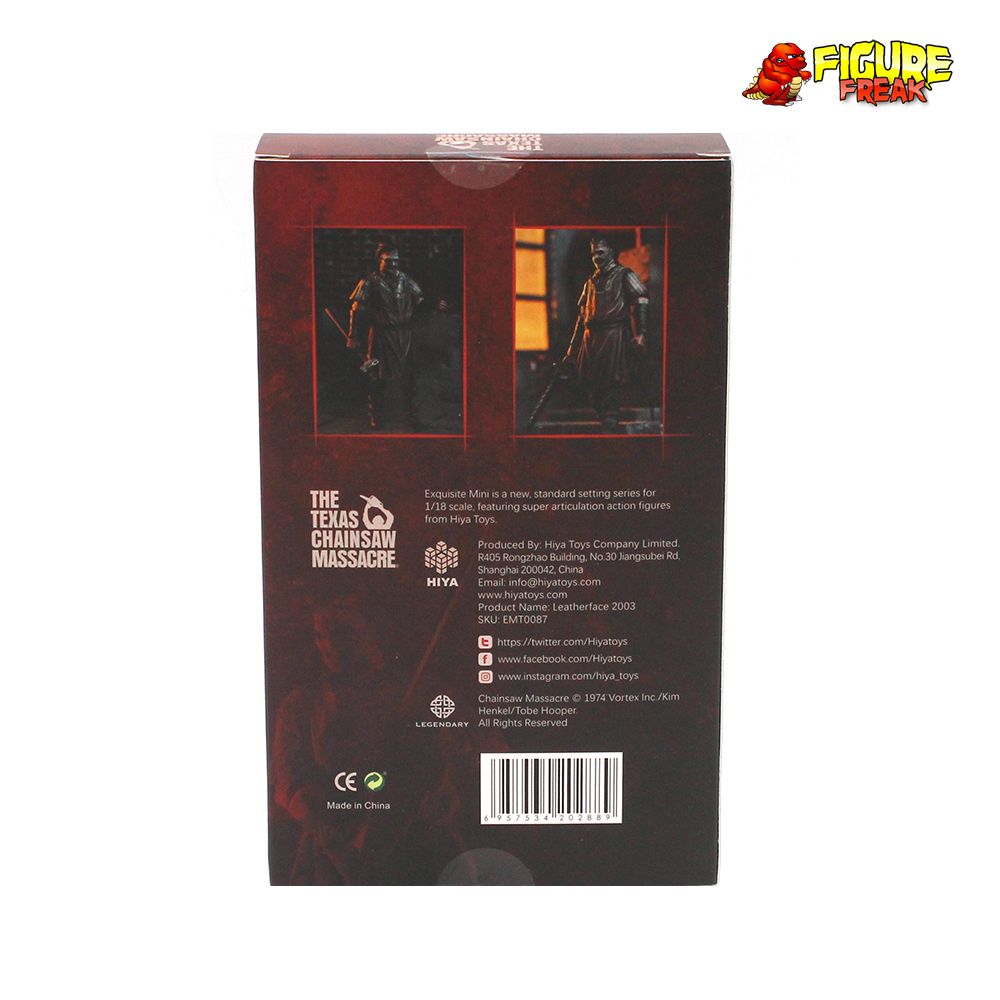 From Hiya Toys. A PREVIEWS Exclusive! After picking up a traumatized young hitchhiker, five friends find themselves stalked and hunted by a deformed chainsawloon and his family of equally psychopathic killers. This new 1/18 scale Leatherface stands at 4.33 inches tall with 15 points of articulation, all details based on Texas Chainsaw Massacre(2003), faithfully reproduces Leatherface's hair and his mask from the 2003 film. Leatherface's hand grips a hammer, and the clothes and apron are heavily stain painted to recreate the atmosphere of the film. Accessories include 1x interchangeable hand and a chainsaw, which is meticulously painted with rusted paint to further enhance the figure's realism pose and dynamically recreate your favorite scenes.