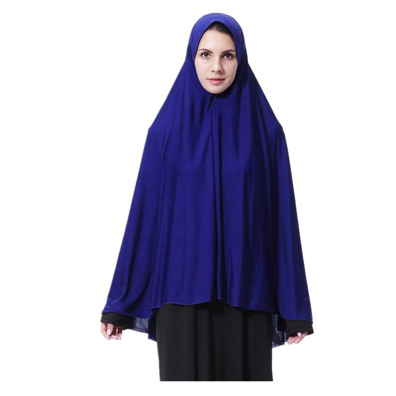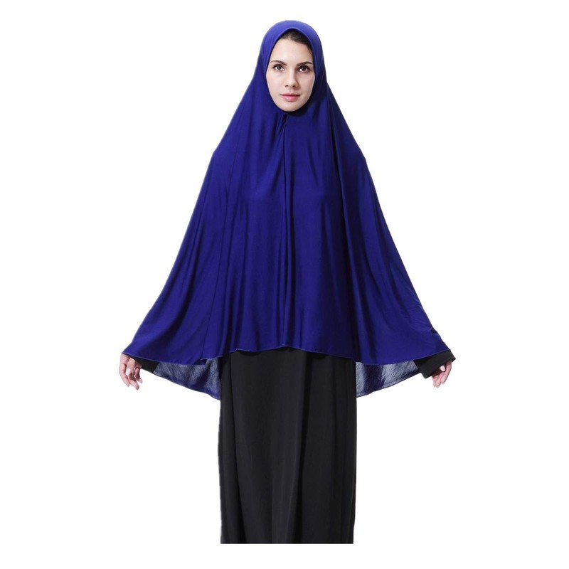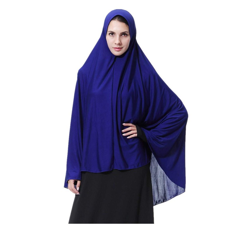 Hiyab musulmán árabe largo de seda de leche de alta elasticidad para mujer, Azul / Patchwork, M
