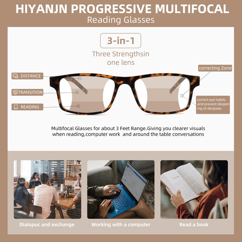 • ▶【BLUE LIGHT BLOCKING PROGRESSIVE READERS LENS】Professional and accurate degree configuration with HD transparent polycarbonate lens gives you gives vision. Anti-scratch blue blocker reading glasses with UV400 protection effectively resist harmful blue rays. HIYANJN anti-blue light glasses provide all-day protection. You can enjoy better sleep and relieve digital eye strain.