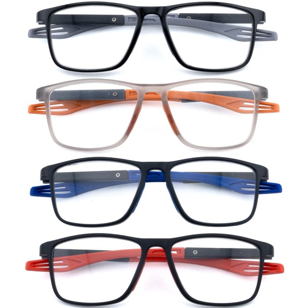 HIYANJN 4 Pairs Blue Light Reading Glasses for Men Sports Style Ultralight Rectangular Eyeglasses