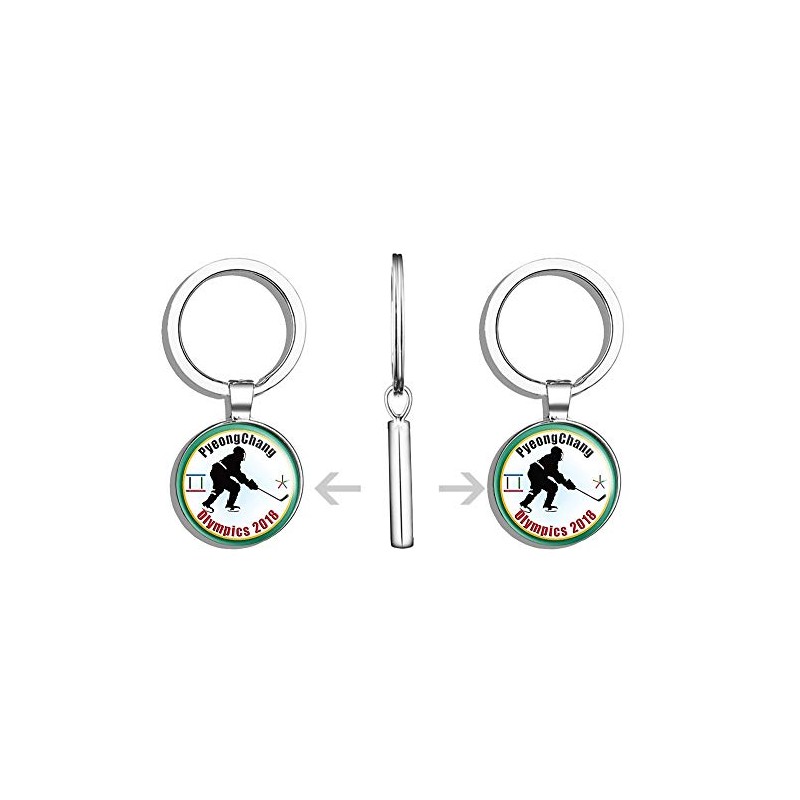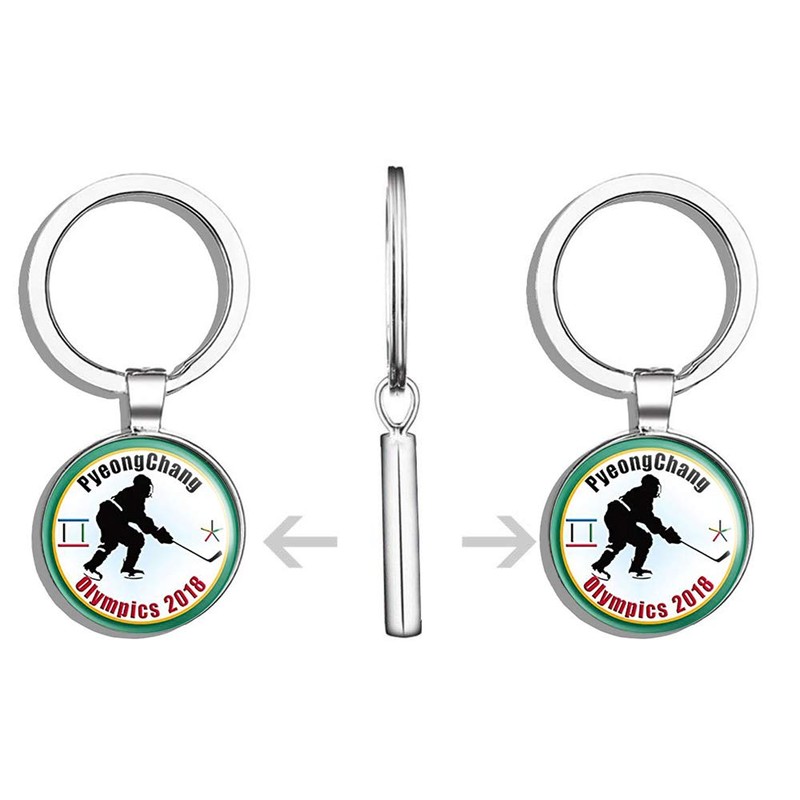 HJ Media Round PyeongChang Olympics ICE Hockey (Player Team Puck Logo) Metal Round Metal Key Chain Keychain Ring