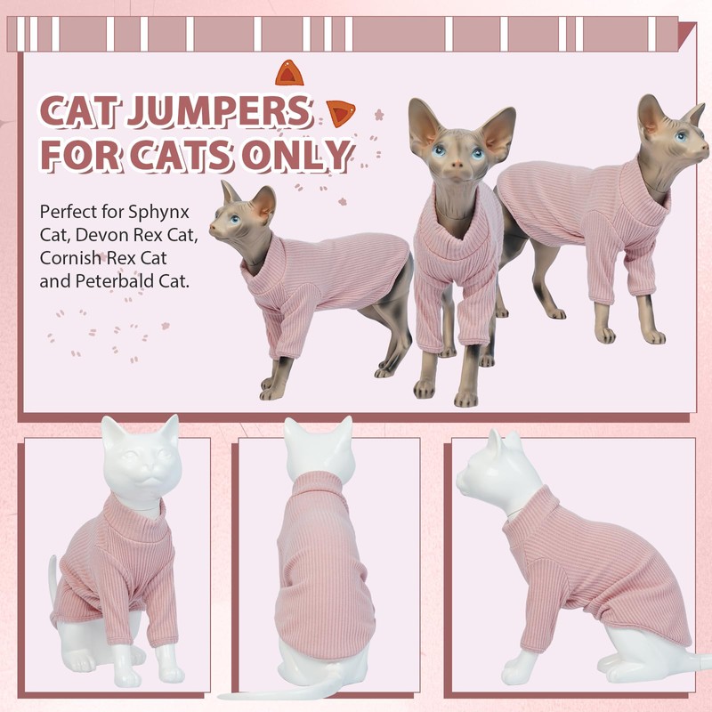 Hjyokuso Cat Clothes, Sphynx Cat Clothing, Cat Jumper Pink, Cat Jumpers For Cats Only, Kitten Clothes Jumper, Breathable Cat Pyjamas, Warm Cat Coat, Cat Sweater, Cat Vest For Sphynx,Cornish Rex - L