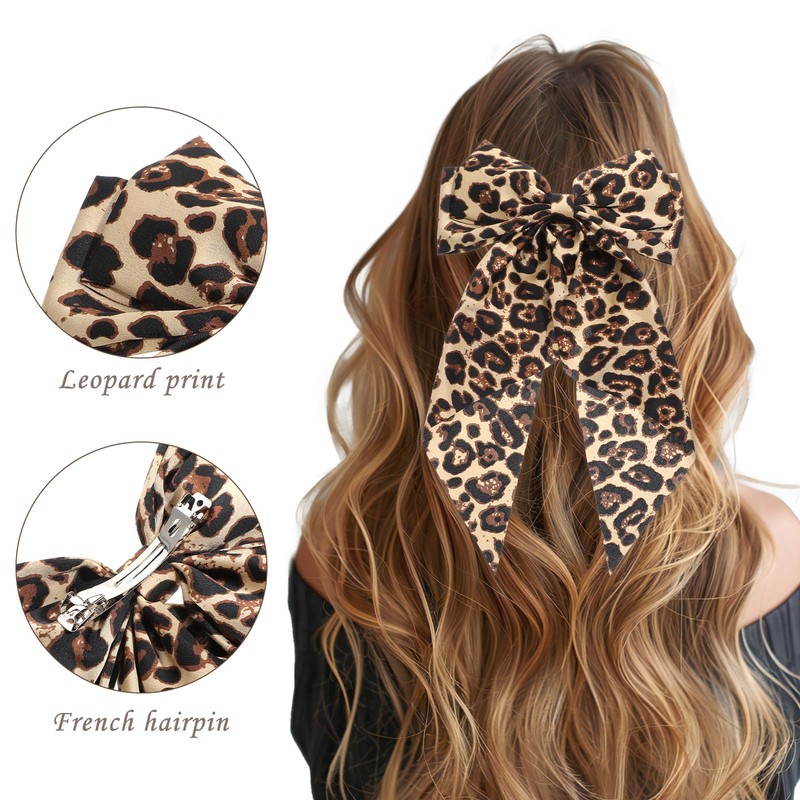 - Charming Leopard Design: Elevate your look with our stunning leopard print bow clip. The long tail shape and bold pattern instantly enhance your elegance and confidence. Whether attending a party or out on a casual day, this stylish hairpin becomes a striking feature that adds sophistication to any outfit, making you stand out wherever you go.