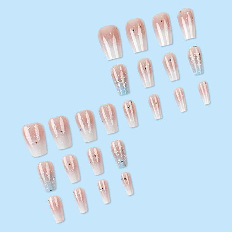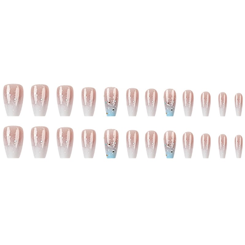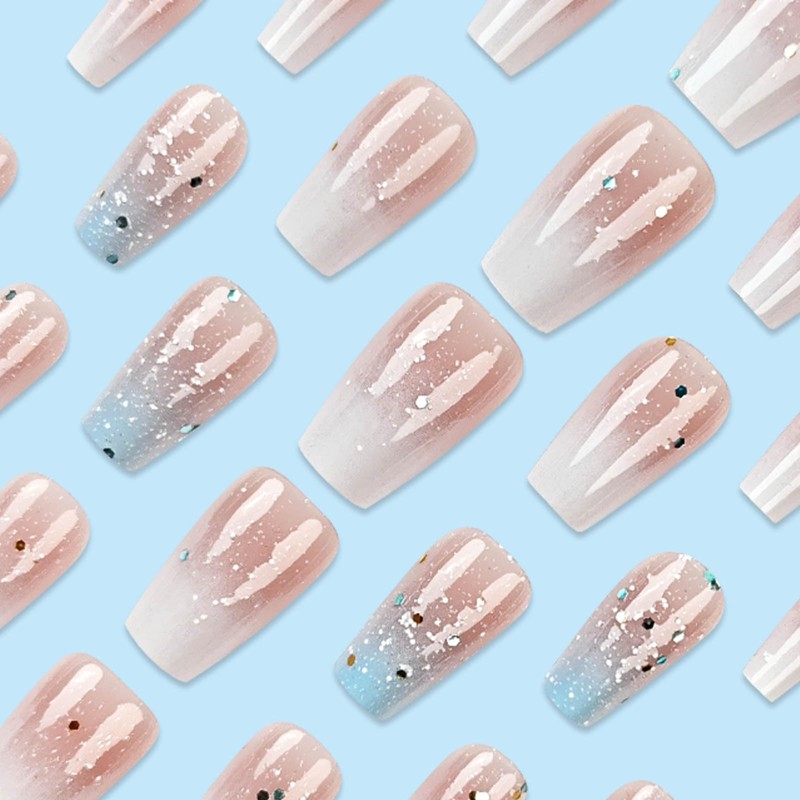 Hkanlre Nude Gradient Fake Coffin Nails Tips Press on Nails Medium Full Cover Sequins False Nails for Women 24PCS