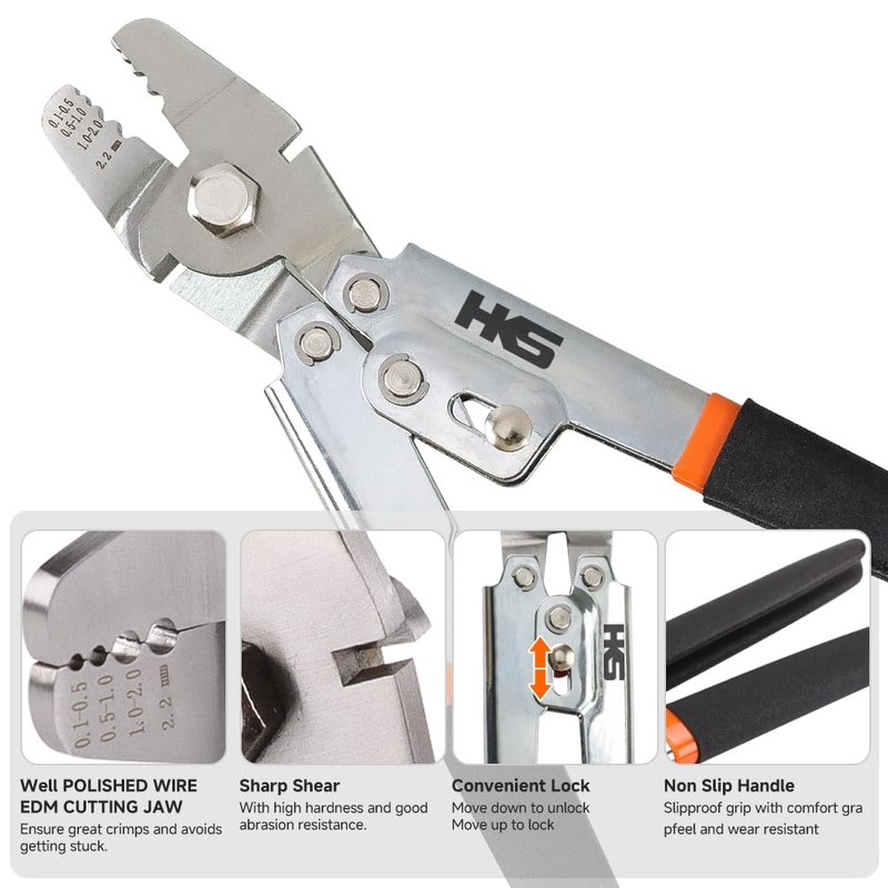 - [Comfortable] Crimping pliers are equipped with non-slip grips for a comfortable grip that makes it easier to provide optimal pressure. The safety lock is a convenient way to keep the crimper closed.