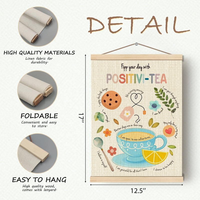 HKTZM Positive Tea Wooden Poster Hangers 12.5×17 Inch,Motivational Poster Hanger Frame,Inspirational Hanging Frames,Mental Health Posters Hanger Frame,Wooden Poster Frame Daily Affirmations For Kids