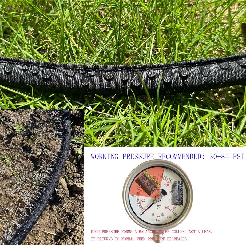 - Maneuverability And 100% Environmentally-Friendly Drip Hose :Double layer design PVC Covered With Extra-Strength Fabric material protect from sun damage than rubber weeping hose;Ensure the longevity of the soaker hose, which is ideal for you using it regularly through all seasons in your garden.Made of 100% environmentally-friendly recycled vinyl,pass CA65 test ,water is safe for ground which makes it perfect for use with vegetables, herbs, and other edible plants.