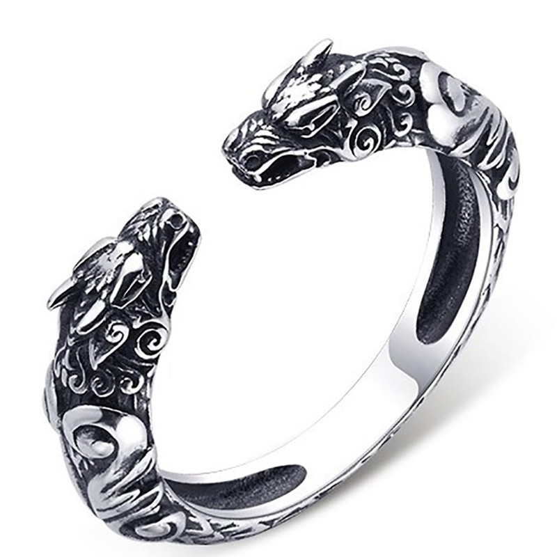 HLMIN Double Dragon Ring 348, Zinc, No Gemstone
