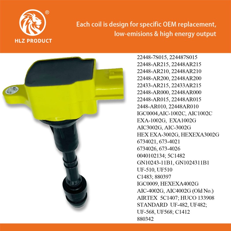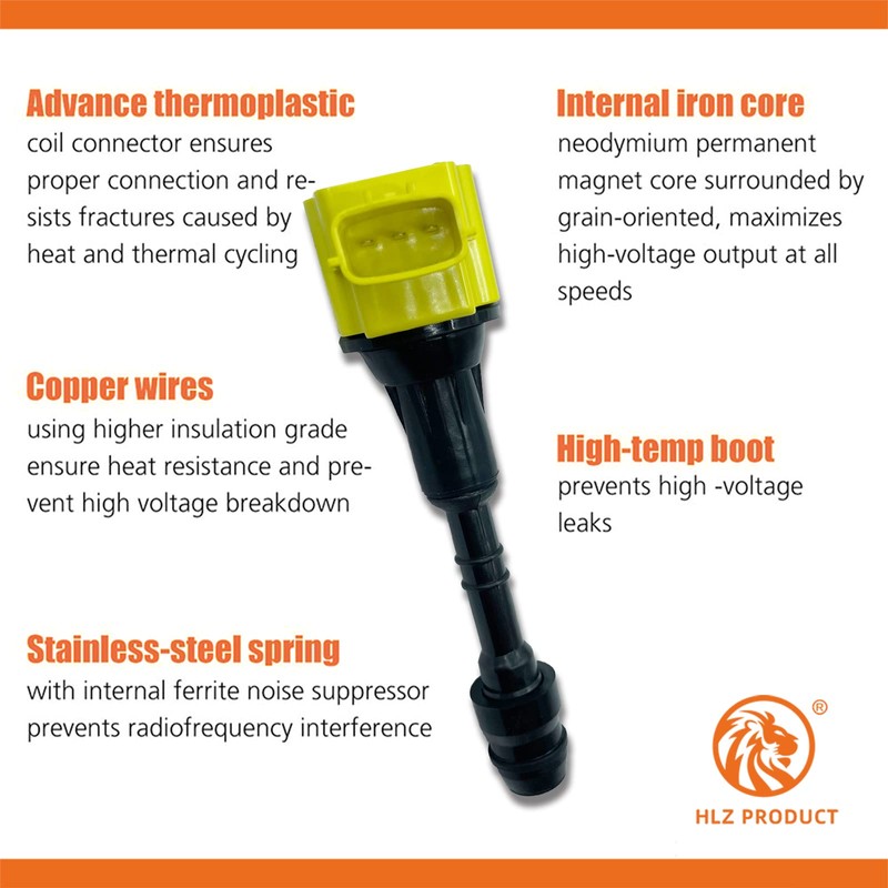 - HLZ PRODUCT utilize the latest OE technology and components to bring exceptional quality to exceed OE requirements. Upgrade 15% more energy than OE coils.Our ignition coil packs can be easily located on both sides of the engine inside the engine bay which can be installed in minutes.you can experience more consistent, smooth engine starts right away.