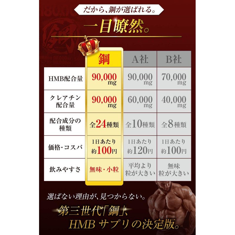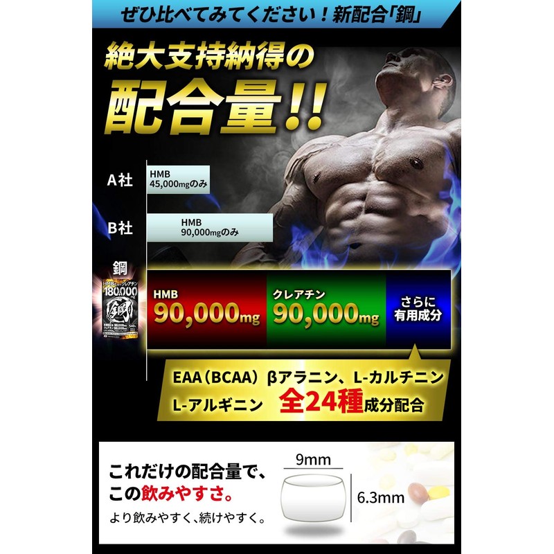 HMB サプリメント 鋼 HMB90,000mg クレアチン90,000mg 計180,000mg超の成分配合 EAA BCAA カルニチン ベータアラニン クラチャイダム配合 ダイエット サプリ 600粒