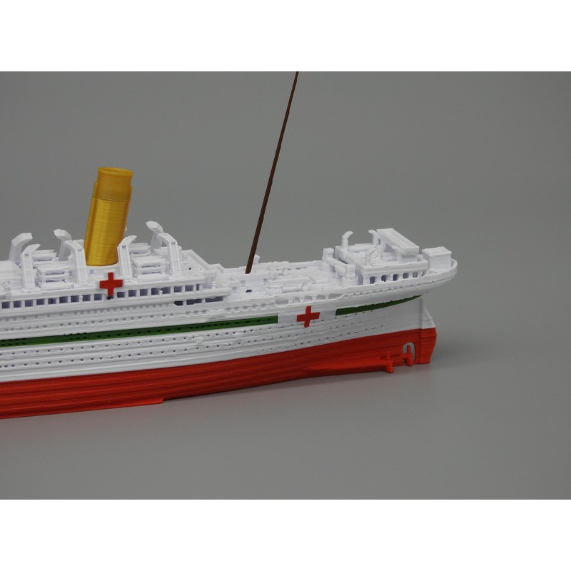 HMHS BRITANNIC, the sister ship of TITANIC, was the third vessel of the White Star Line's Olympic class of steamships and the second White Star ship to bear the name Britannic. She was the fleet mate of both the RMS Olympic and the RMS Titanic and was intended to enter service as a transatlantic passenger liner. Britannic was launched just before the start of the First World War. On the morning of November 21st, 1916 she was shaken by an explosion from a naval mine of the Imperial German Navy near the Greek island of Kea and sank 55 minutes later. At THEROLLER3D, we see the value in our shared history and will always strive to find new and creative ways to bring that history back to life in our products. There is a difference between models and toys. These are high quality artisan models not toys. They will hold up to light play but should not be hit or banged around as there are little pieces that can break off. We try our best to make these models strong but because they are 3d printed models, they will always be weak in some of the areas with smaller pieces. They will float in water but not straight. Please do not buy this model if all you are looking for is a toy boat to float in the tub. Even still, if you appreciate beautiful, accurate, highly detailed yet still affordable models, then these are the coolest things of all time! Thank you - Andy