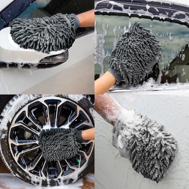 - 【High Quality Material】Our car wash gloves are made of high quality chenille microfibre, soft and comfortable, strong and durable, easy to grip, not easy to tear, good cleaning effect. It will not damage the car paint and interior under normal use, gently removes dirt from the surface of cars, trucks, motorbikes, boats and other vehicles, while ensuring scratch-free cleaning.