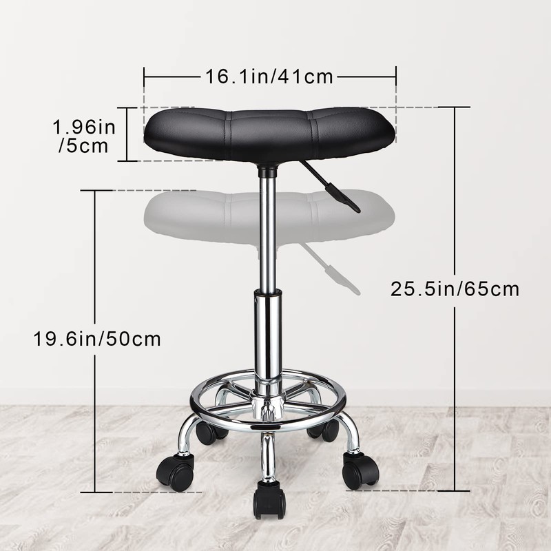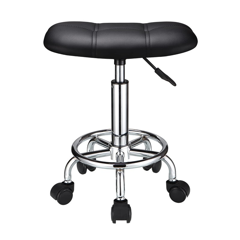 HMTOT Square Rolling Stool with Wheels Height Adjustable Swivel Stools Black