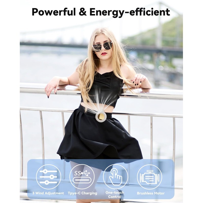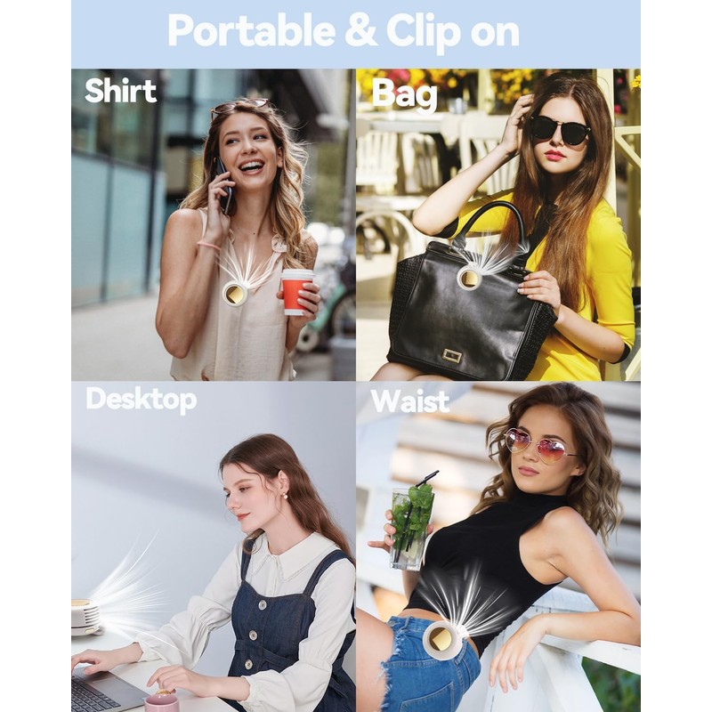 - 【360° Clip and Adjustable Heat Dissipation】Multifunctional clip design, can be comfortably fixed on the waist, neck or clothes. The airflow can be directly guided to the desired position, instantly freeing your hands and relieving pressure.
