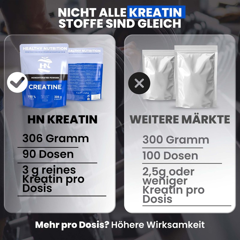 • Creatine monohydrate powder pure: high-quality formula with micronised creatine monohydrate - without fillers or additives. Maximum purity for effective absorption. 3.4 g HN Creatine Monohydrate corresponds to a dose of 3 g of pure creatine, which is easily soluble due to its micronisation process.