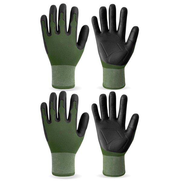 HndToArm Gardening Gloves for Men & Women Ladies, New & Durable TPE Coated for Yard Garden, Outdoor Indoor Protective Work, 2 Pairs (Dark Green, Medium)