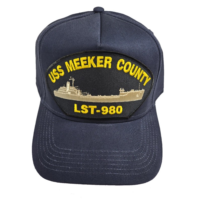 USS MEEKER COUNTY LST-980 SHIP HAT. LST-542-class tank landing ship. World War II. WWII. Normandy. Vietnam War. CAMID I, II, and III. Navy Blue Cap High Detail and Impact. 8 Rows Stitching on Visor and Pro Stitch on Crown 5 panel hat. Adjustable Size, Navy Blue Golf Style. Great Gift Idea for ANYONE, especially those shipmates who served on the USS MEEKER COUNTY LST-980, or who are interested in its history. HatnPatch Is THE Veteran Family-Owned and Operated Business. We Generally Ship Orders Within 24 Hours And Usually The SAME DAY!