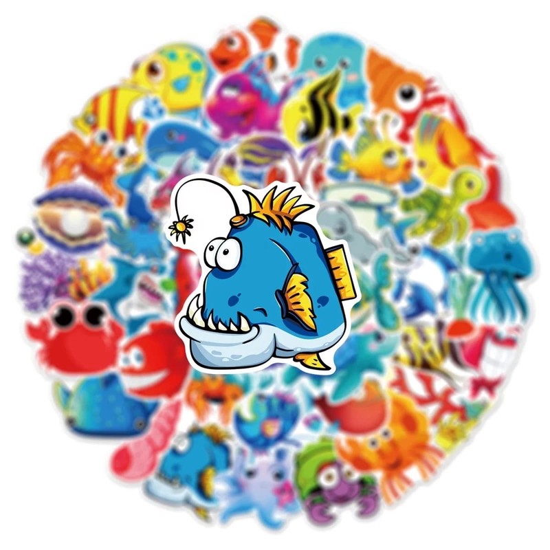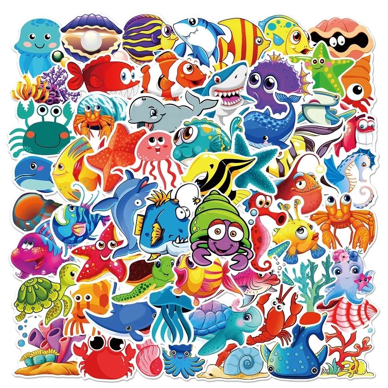 HNTR Vibrant Sea Creatures Stickers | 50 Colorful Ocean Animal Decals
