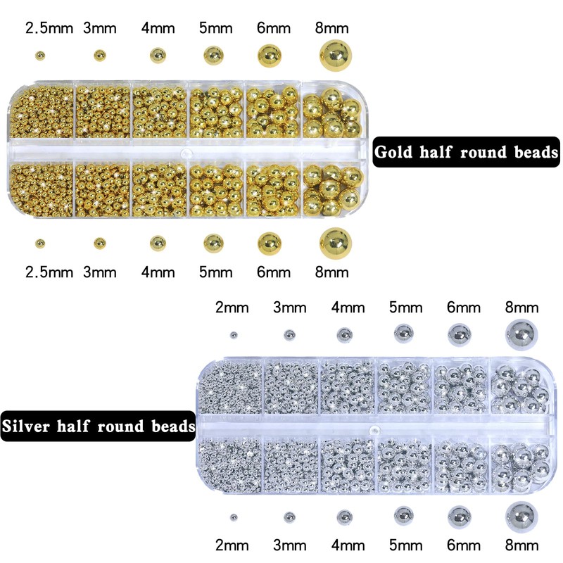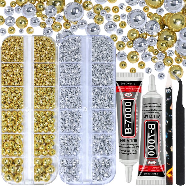 - Package Includes - 1 box of flat back half round gold silver pearls, 1 pair of tweezers and 1 pick up pen and B7000 Gemstone Clear Adhesive.
