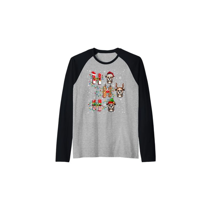 Ho Ho Ho Santa Hat Elf Matching Russell Terrier Dog Xmas Raglan Baseball Tee
