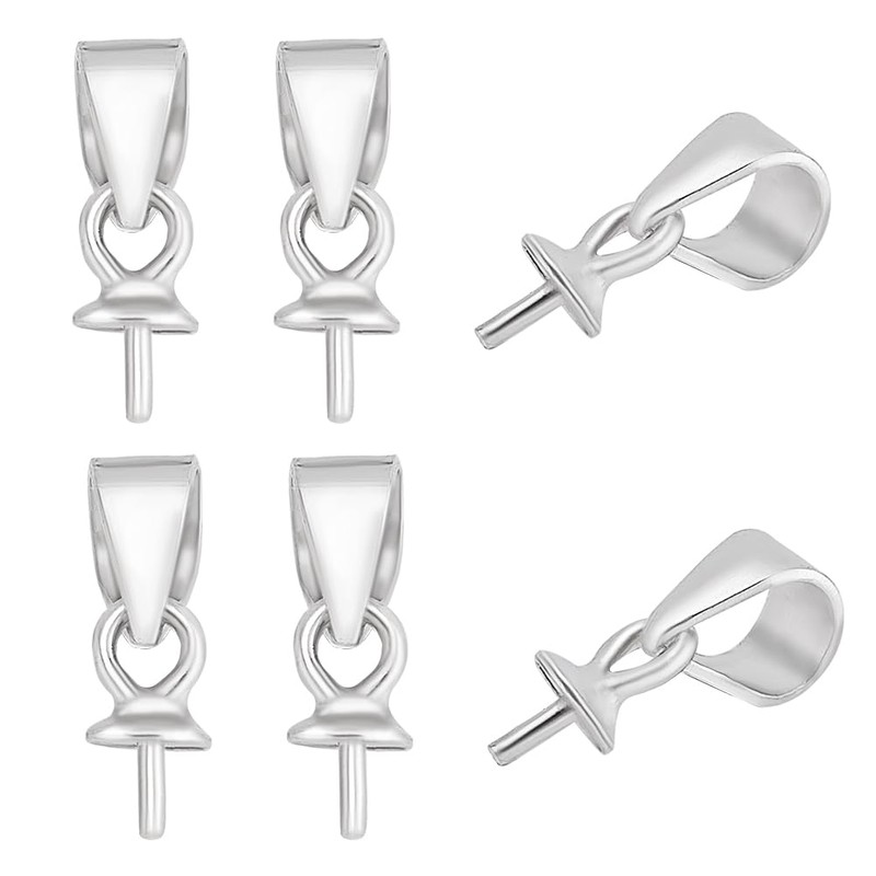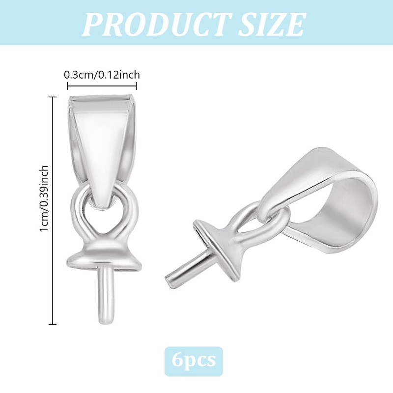 HOBBIESAY 6Pcs 925 Sterling Silver Screw Eye Peg Bails with Snap Bail Hook Pinch Screw Eye Pin Bails Pendant Connectors for Pearl Gems Jewelry Making Hole: 3x4mm