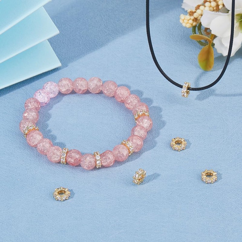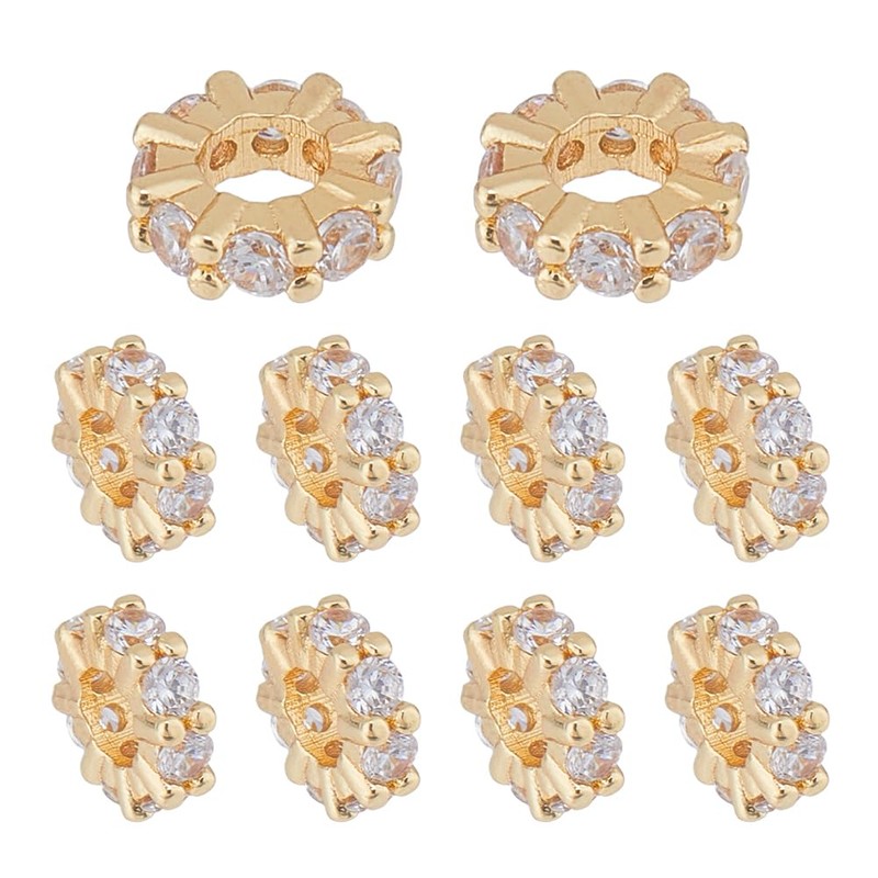 Hobbspring Rondelle Spacer Beads 8 mm Brass Cubic Zirconia Beads Golden Rhinestone Loose Beads Flat Round Spacer Beads for DIY Bracelet Necklace Jewellery Making Supplies Pack of 10