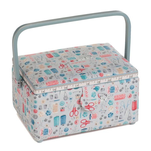Hobby Gift Medium Sewing Storage Box Wood/Fabric PVC Handle Stitch in Time