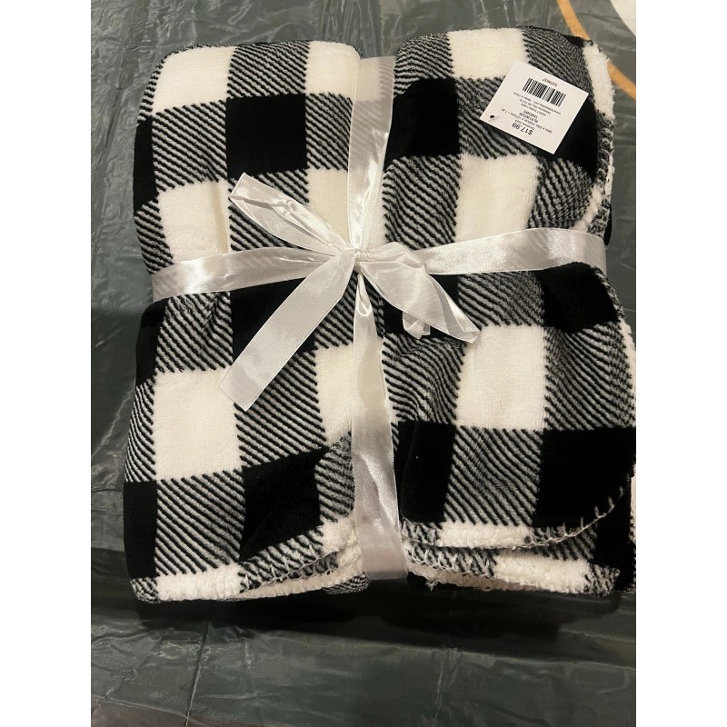 Hobby Lobby Blanket Throw Plaid Black White 50x60 Minky Fleece Sherpa Lined New