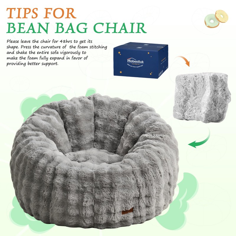 - Convenient and No-Assembly: Enjoy hassle-free setup with this bean bag chair with filler included. Simply open the compressed package and let the huge bean bag expand over 48 hours. Once fully expanded, you can recline and indulge in a delightful experience. If you have any questions, feel free to reach out to us, our Hobestluk team provides you with 24-hour service.