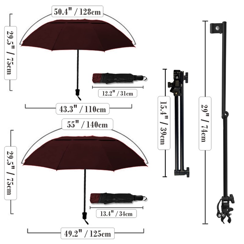 - Widely Uses - This clip-on golf umbrella is not only suitable for golf courses but also can be used in fishing, beach, baseball fields and swimming pools, it is your first choice for outdoor activities.