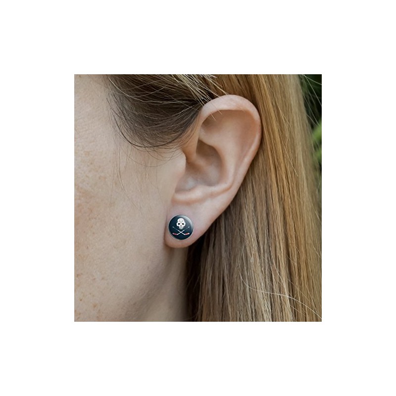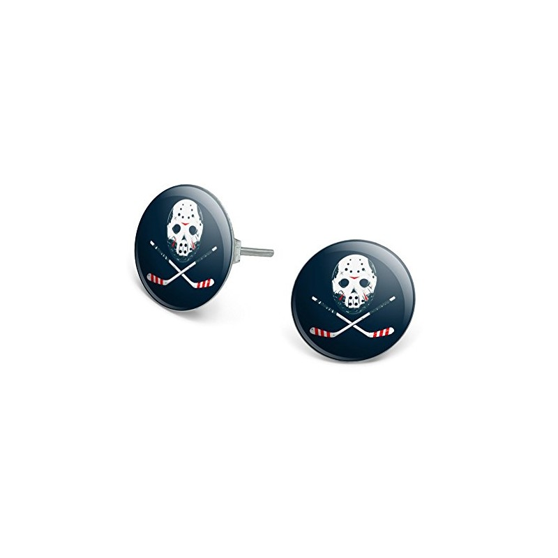 Hockey Mask Skull Crossbones Stick Novelty Silver Plated Stud Earrings