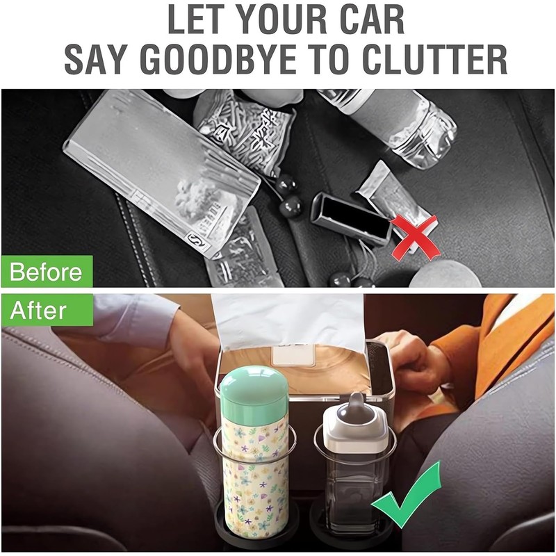 - DOUBLE CUP HOLDERS Equipped with two collapsible cup holders to keep your drinks safe and handy without wasting car space