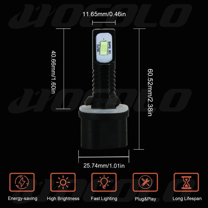 HOCOLO B Ice Blue White Fog Light DRL 8000K 6000K LED Bulbs-H7 H8 H3 H4 H1 9005 9006 880 881 2504 (B-880-Fog, White 6000K)