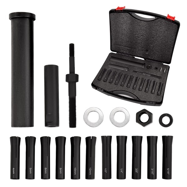 • Simple and Efficient Usage Method: Master puller sets includes both SAE and Metric collets, no longer will there be a need for a slide hammer when extracting dowel pins. Simply fit the appropriately sized collet over the dowel, tighten the sleeve, and use the outer sleeve and nut to extract the dowel