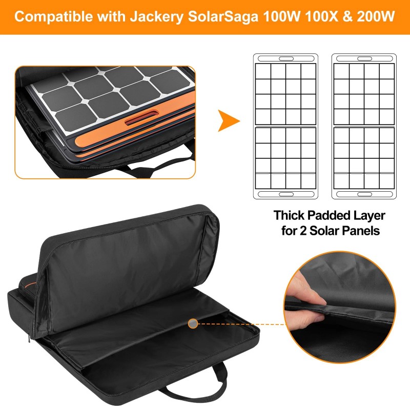 Perfect Compatibility: Mainly compatible with Jackery* SolarSaga 100W 100X 200W, compatible with ROCKPALS* SP003 100W, and also compatible with Togo Power* 100W; suitable for most 100W 60W foldable solar panels; backpack size: 22 x 4.5 x 25.5 inches; *our product has no connection with all brands mentioned