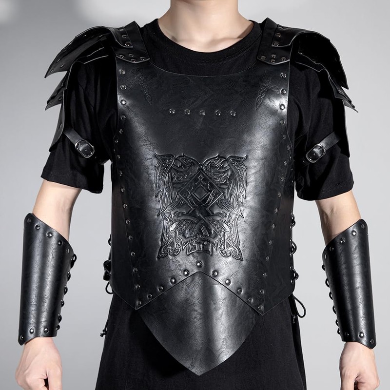 - Leather Arm Armor - These mens bracers inspired by viking and celtic cultures. The string design is easy to control and helps the knight leather gauntlets fits for most people's arms. Great addition to your medieval outfit, the medieval waist guard are added the extra bit of epicness to your costumes outfit
