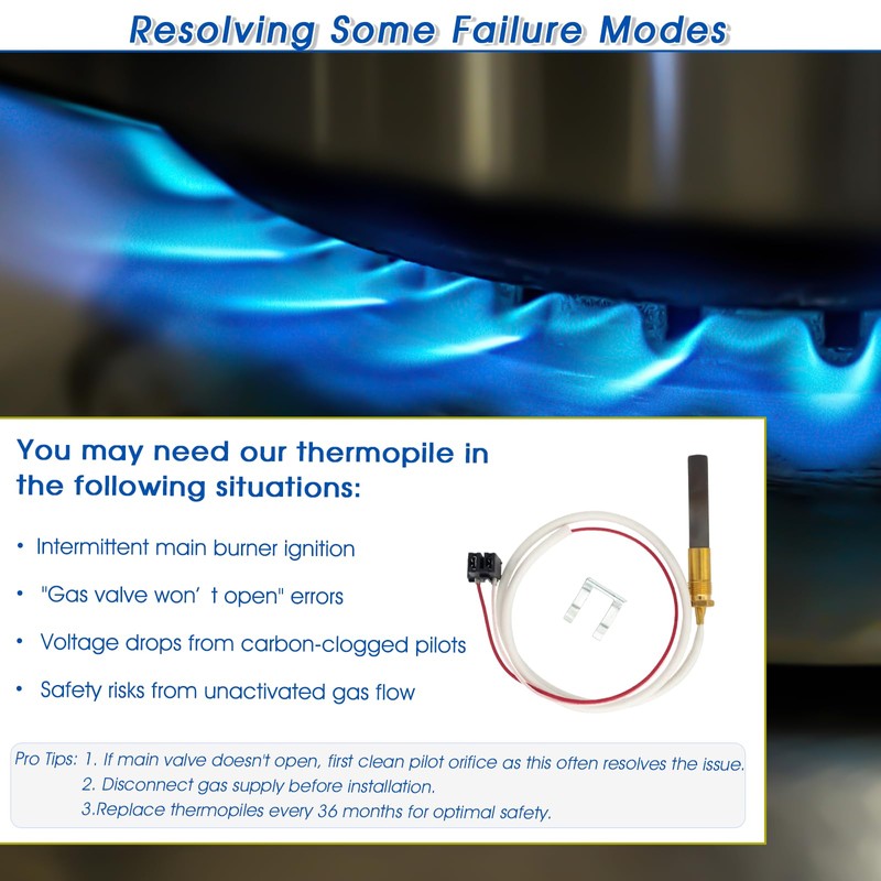 - Professional Installation Guidance: For optimal performance, ensure pilot flame fully covers thermopile tip. If main valve doesn't open, first clean pilot orifice as this often resolves the issue. Proper installation ensures maximum efficiency
