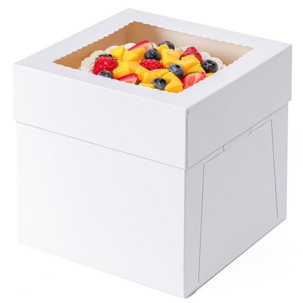 Hoewina 10 Pack Cake Boxes 10 Inch, 10x10x8 Inches Tall Cake Large Box, Disposable Cakes Transport Containers with Lids, Bakery Boxes with Large Window,for Cookies Pies Cupcakes Pastry-Wedding,Birthday, Party