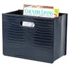 - Magazine holer covered with elegant ostrich faux leather, the bottom piece is inserted it becomes and stays quite sturdy. This magazine rack is a beautiful addition to your home.
