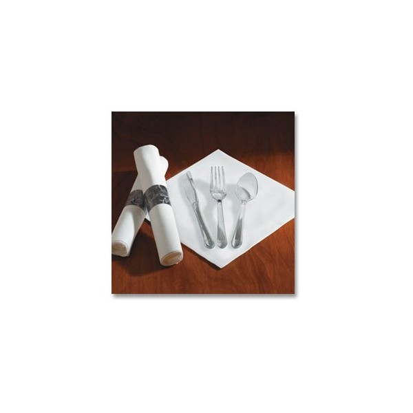 Hoffmaster 119973 Linen-Like CaterWrap Pre-rolled Dinner Napkin and Heavyweight Cutlery, Damask, White/Clear (Case of 100)