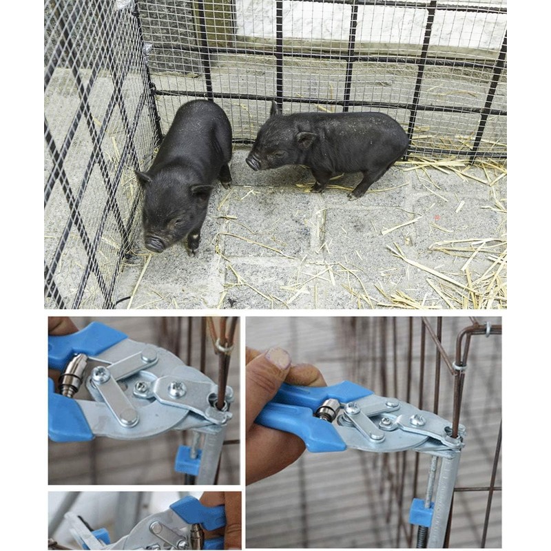 - 🧰 **Complete Repair Kit—**Includes one ergonomic hog‑ring plier and 600 galvanized steel hog rings, ideal for fencing, animal cages (chicken, duck, rabbit), upholstery, wire railings, and mesh repairs.