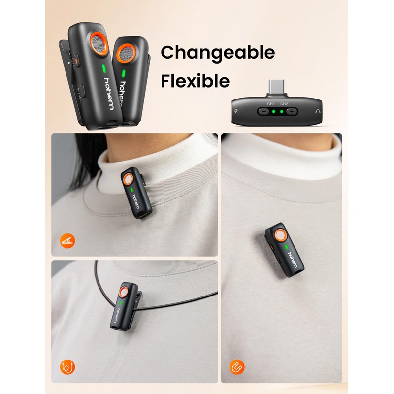 • Excellent Noise Cancellation: The Hohem Wireless Microphone with Type-C interface is equipped with a high-performance 3-level noise cancellation and 360°omnidirectional pickup allowing you to record your voice clearly even in noisy environments. The microphone also has a reverb function mode becomes more interesting and professional when recording songs.