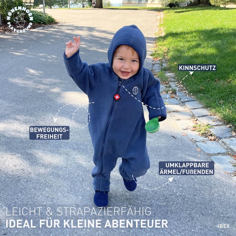 Höhenhorn Ibex Baby Fleece Jumpsuit Winter Autumn Romper Toddler with Hood, darkblue