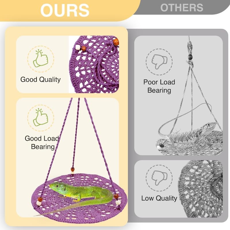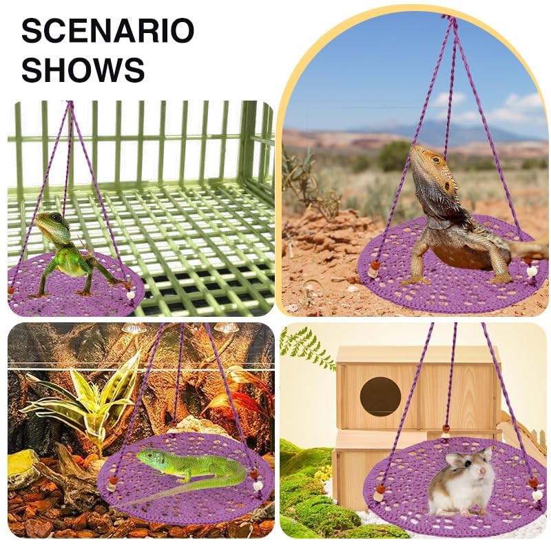 - DECOR: The tightly woven, breathable design creates a ventilated resting spot, ensuring a cool and comfortable environment for lizards and reptiles. Additionally, the swing bed encourages exercise, helping your pet develop coordination and balance skills.