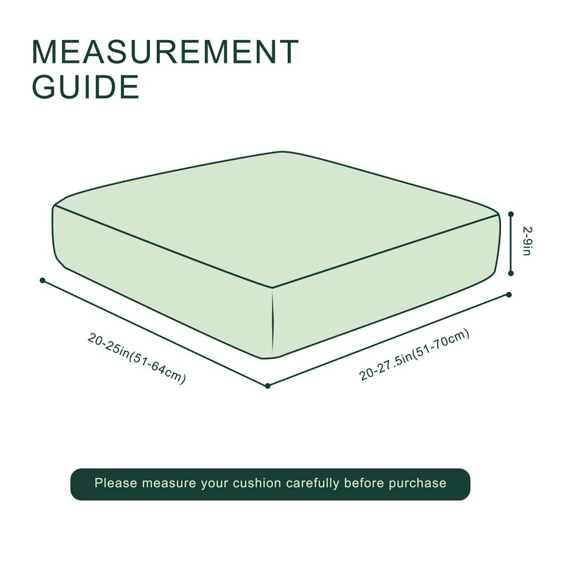 - SIZE GUIDE: 1 PC included. Fit a cushion with 20-25" in length, 20-27.5"in width, 2-9" in height. With great elasticity, fits for more than 90% cushion. Wider size application due to the elasticity and the stretchy band we have on the bottom.