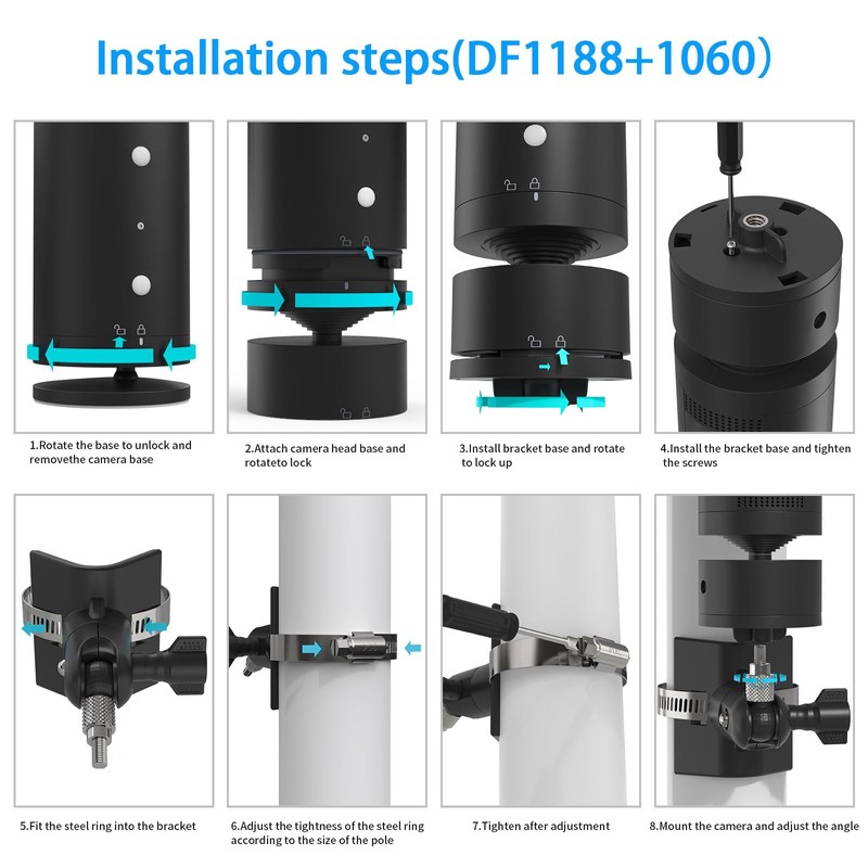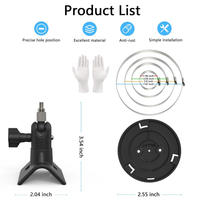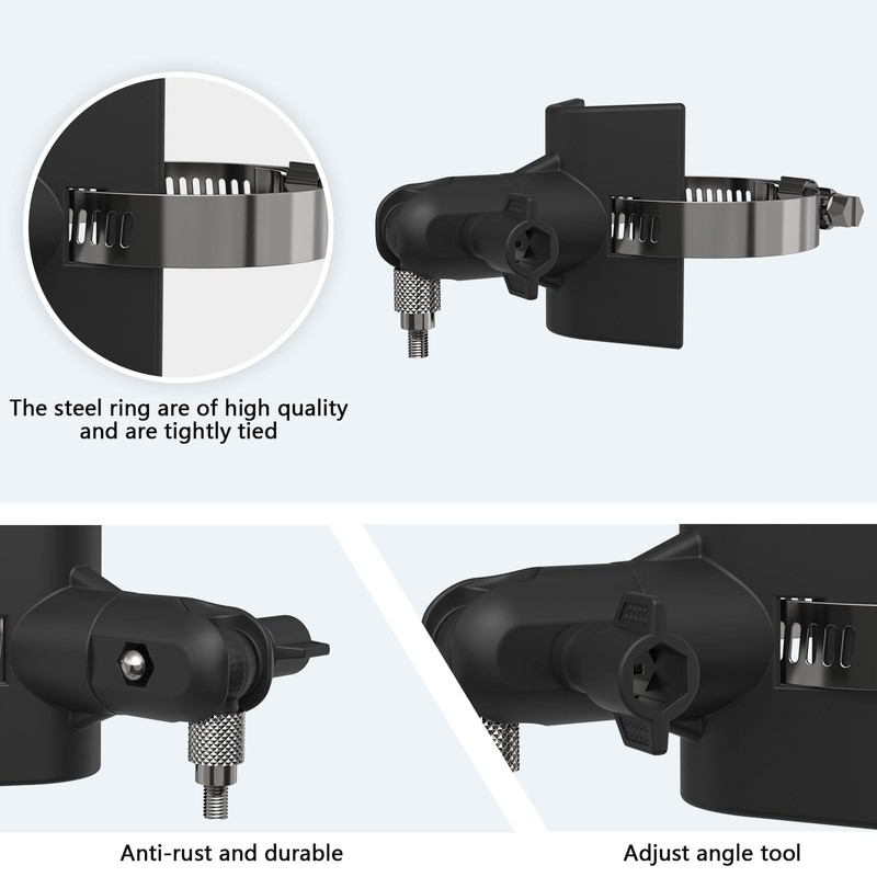 - The pan tilt mount adapter allows for easy adjustment of the camera angle, and the steel tube plumbing bracket provides a secure and stable mounting point.
