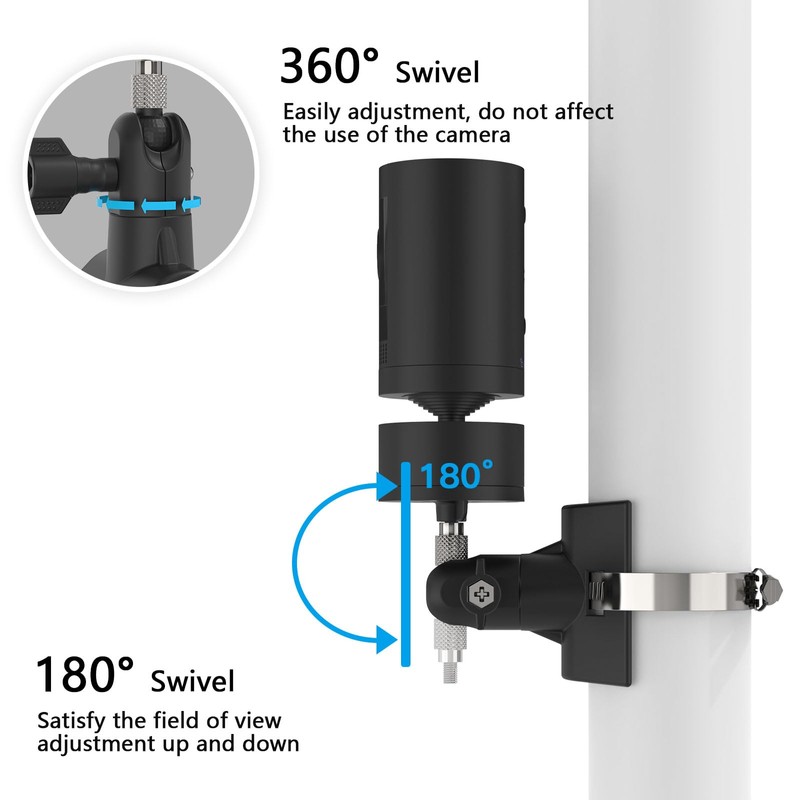 HOLACA Camera Mount Pipe Mounting Bracket for R ing Pan-Tilt Mount R ing Indoor Camera, Adjustable Flexible Stand for Pan Tilt Mount Black