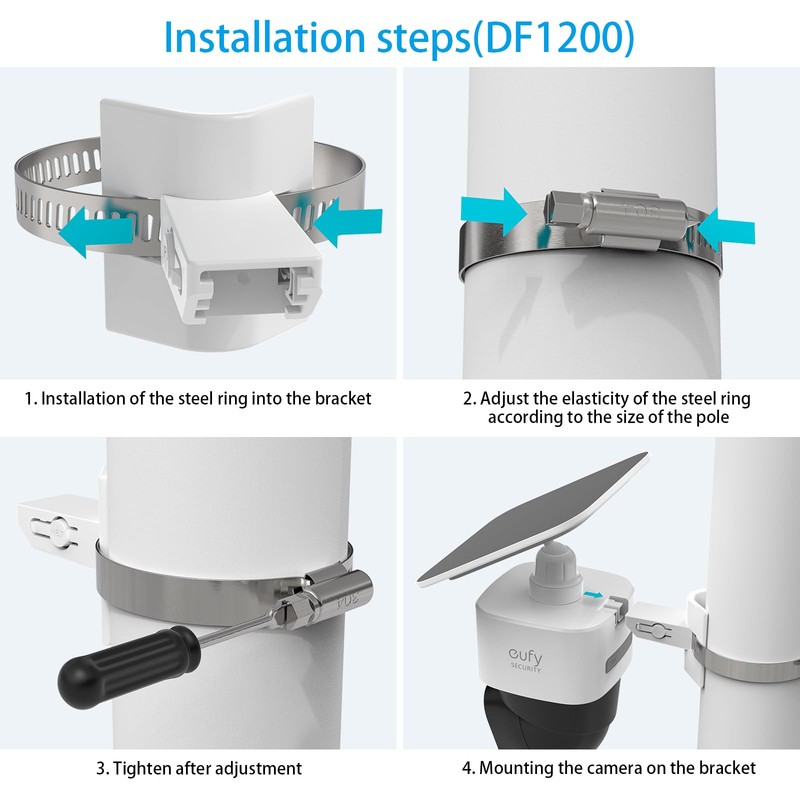 • Use mast brackets to mount your solar panels, and add railings, pipes or poles intelligent security without drilling holes to gain new viewpoints and get more sunlight.