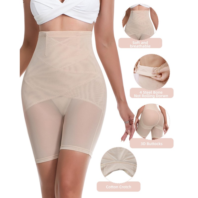 - Excellent body shaping effect: This butt lifting shapewear features cross-X-shaped lines and a high-waist design on the abdomen, providing enhanced compression and support. This tummy control shorts effectively compresses excess abdominal fat, restoring the waist's natural curves and creating a slimmer appearance