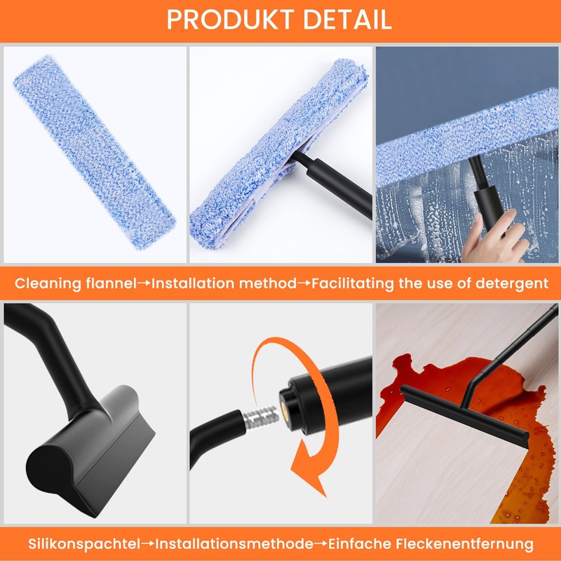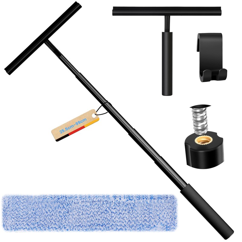 - Versatile adaptability: shower squeegee black can extend the length from 23.5 cm to 97 cm, which allows you to easily clean even hard to reach places. Whether small windows, large glass surfaces or other surfaces, our shower squeegee can be easily used anywhere without the need for additional tools.